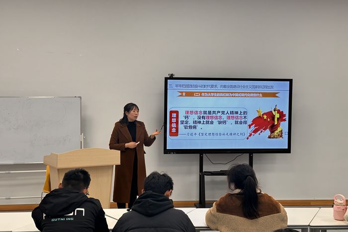 王瑞晨以《聚焦中国式现代化》为主题,围绕中国式现代化的三个核心深度展开深入探讨:其一,中国式现代化凝聚着中国共产党与中国人民长期以来在实践中探索的智慧结晶与伟大成果;其二,需深刻领悟中国式现代化所蕴含的独特中国特色,这是区别于其他现代化模式的关键所在;其三,务必紧紧抓住团结奋斗这一时代脉搏,由此踏上全面建设社会主义现代化国家的崭新征程。最后,她向思政委员发出有力倡导:同学们要秉持独立自主之精神、坚守脚踏实地之作风、筑牢坚定理想信念之根基、胸怀家国天下之抱负,为中华民族伟大复兴的宏伟蓝图注入青春的蓬勃力量,书写属于这一代青年的绚丽华章。