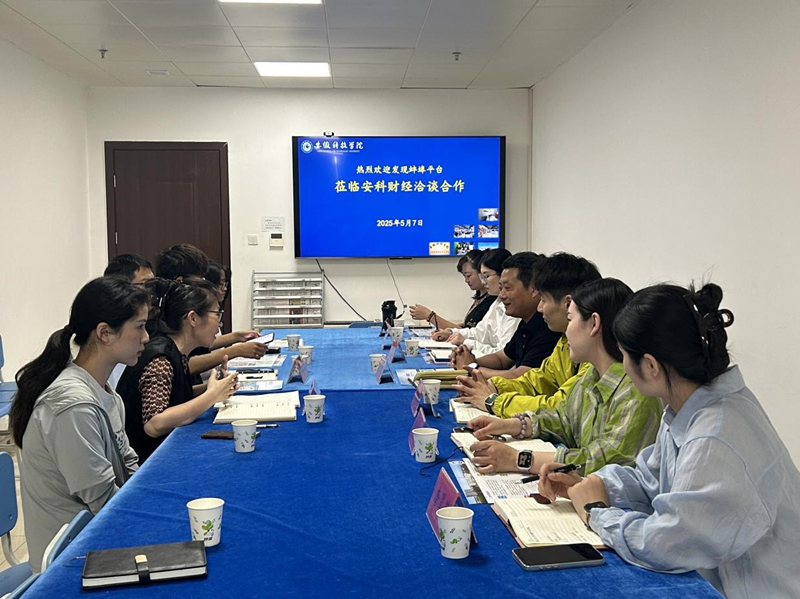 为推进校企深度合作,实现资源共享、协同发展,5月7日下午,懿文汇数字科技(安徽)有限公司(发现蚌埠平台)总经理杨连高一行7人莅临安博站·官方版网站登录入口财经学院,就深化合作项目展开交流座谈。财经学院党委书记杜小明、院长郝世绵、安科绿农电商直播团队成员热情接待并参与座谈。