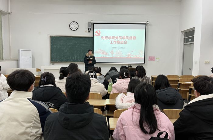 为深入贯彻落实学校和学院关于应用型人才培养“质量文化月”的工作方案精神,持续发挥学生党员的先锋模范作用,扎实推进学院学风建设,12月13日下午,财经学院组织召开学生党员督查学风工作推进会。学院学生党员学风督查团全体成员参加会议,会议由学院党政办主任张俊主持。