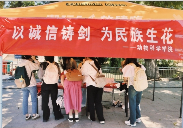 学院举办了开展“助学圆梦,青春启航”征文比赛和诚信签名墙活动。学生们积极参与,结合个人对资助政策的理解和感悟,提交了内容真实,感情真挚的优秀征文作品。5月15日下午,动物科学学院在凤阳校区西区广场开展线下摆点,邀请同学在相关横幅上签署姓名,引导学生树立励志、感恩、奋进的诚信形象。