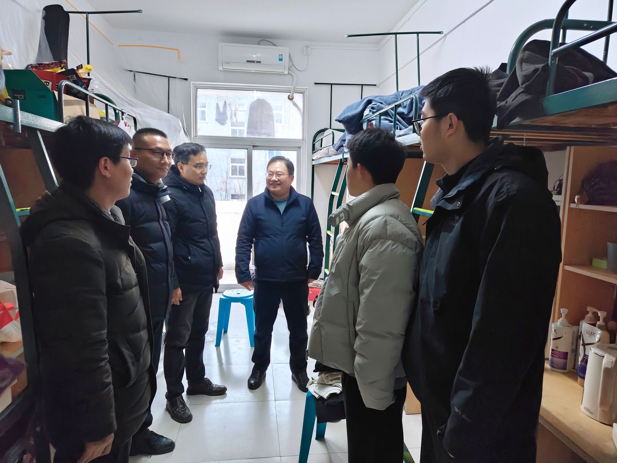 新学期伊始,为切实了解学生返校情况,加强学院对学生的人文关怀,2月16日,动物科学学院党委书记甘宗平,党委副书记、副院长周金星(主持工作),党委副书记汤帅,党委委员、副院长贺绍君及全体辅导员一行深入学生宿舍走访慰问,为同学们送上新学期的关心和问候。