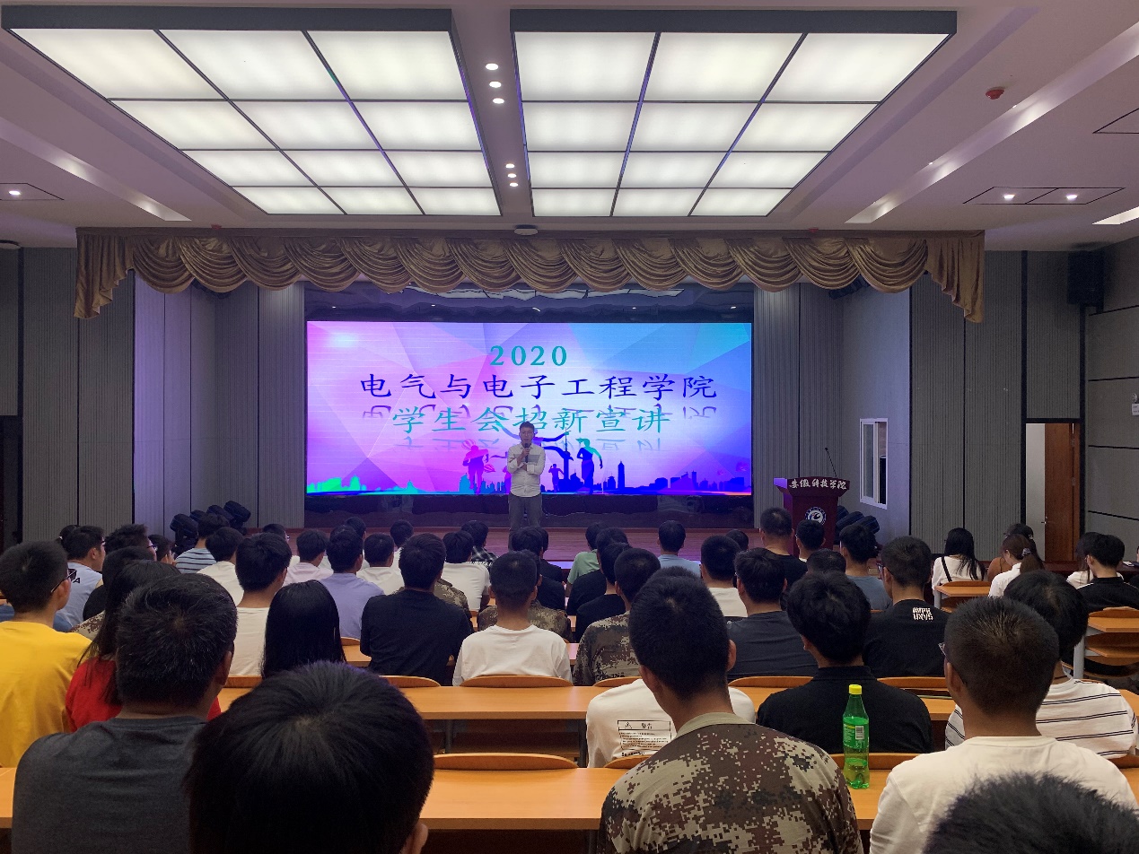 9月23日晚,电气与电子工程学院在敏行楼A报告厅开展学生会招新宣讲活动。学生会指导老师张深、辅导员洪乃羽、学生会全体人员及2020级新生参加此次宣讲活动。活动由学生会执行主席黄世伟主持。