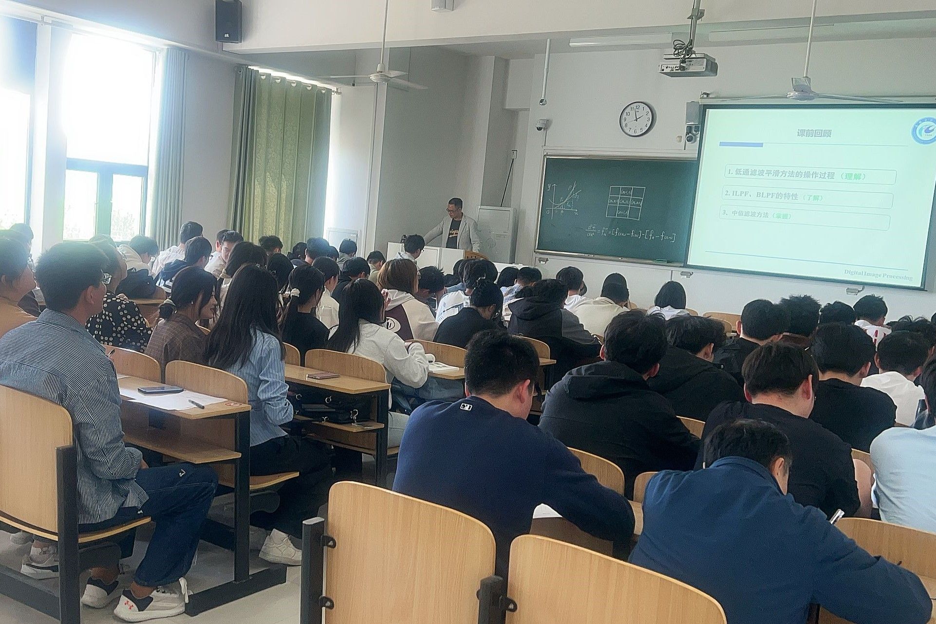 4月15日,电子工程系刘超吉老师率先开启首场公开课。在《数字图像处理》课程中,他通过噪声去除实际问题导入,系统讲授中值滤波法的原理与算法实现。刘老师授课理论结合实际层层剖析滤波窗口选择对去噪效果的影响,引导学生理解算法优化思路。4月22日,两场跨学科公开课依次开展。光电工程系任亮亮老师在《大学物理》课堂上,以"电场强度计算"为主题,通过微元法公式推导将抽象的电场概念具象化。同时他以生产实践中的现象举例,启发学生理解物理原理的工程转化。电气工程系郑清源老师在《过程控制与仪表》课程中,聚焦"调节器与PID控制器"核心内容,通过控制系统实例,动态演示比例、积分、微分环节的参数整定过程。