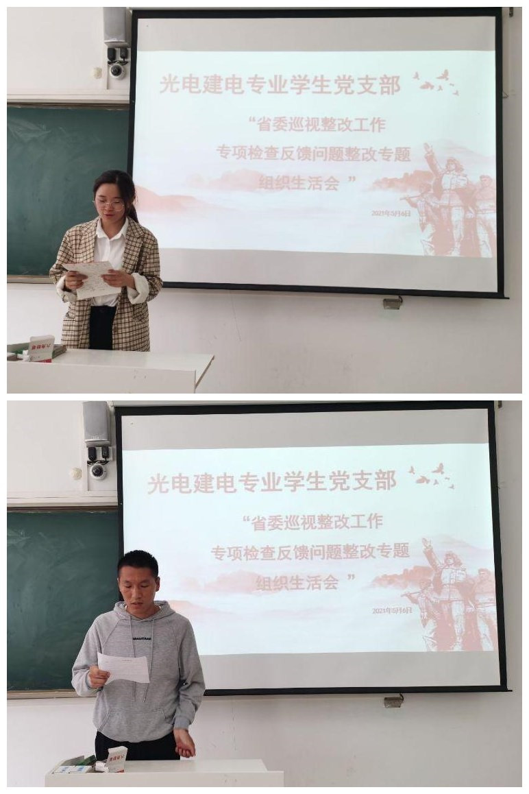 光电建电专业学生党支部召开省委巡视整改工作专项检查反馈问题整改专题组织生活会