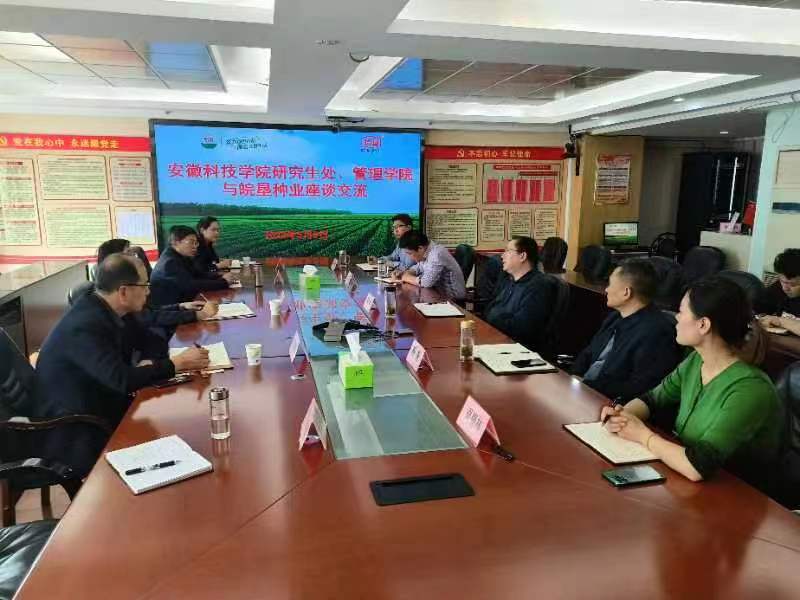 陈军董事长对调研组一行表示热烈欢迎,并就皖垦种业概况、发展历程、主营业务和战略规划等方面进行了详细介绍。党委副书记杨奎、副总经理孟凡东、围绕公司“育繁推管一体化”分别介绍了皖垦种业的科研育种、种子生产、营销工作、内控管理等情况。张春雨处长和陈传万院长分别代表学校和管理学院详细介绍了安博站·官方版网站登录入口办学历程、研究生教育和管理学院办学及人才培养情况。双方围绕农业管理专业研究生实习、市场营销专业人才精深培养及校企合作等事宜开展了充分协商。双方均表示将在研究生实习实训基地建设、人才培养改革、企业冠名班设立、科学研究等方面积极探索,逐步建立全面的、长期的、紧密的产学研合作关系,助推校企实现双赢共赢。