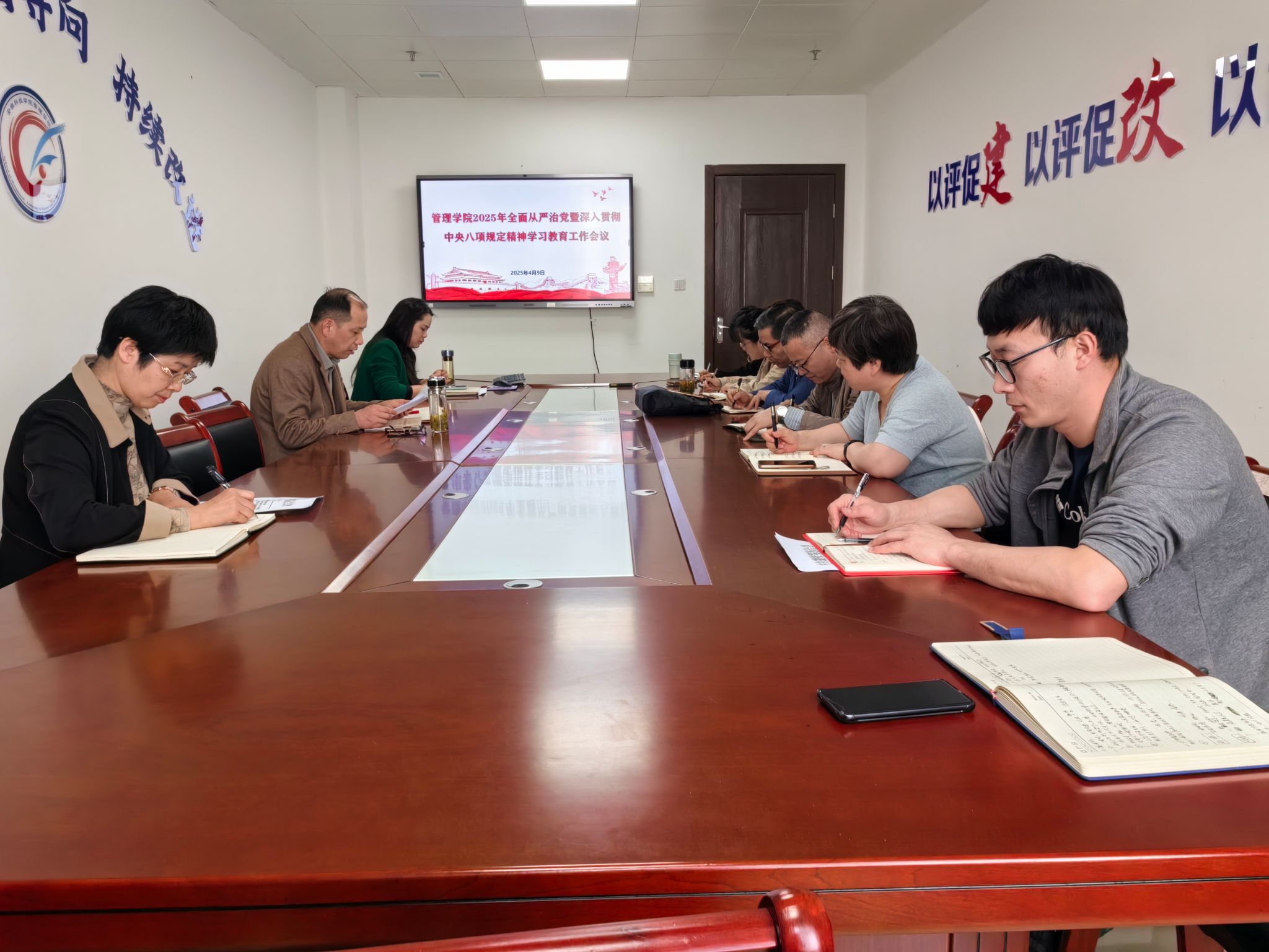 4月9日下午,管理学院党委召开党委扩大会议,研究部署2025年全面从严治党暨深入贯彻中央八项规定精神学习教育工作。学院党政领导、科级以上干部、党支部书记、系室主任参加会议。会议由学院党委书记丁景良主持。