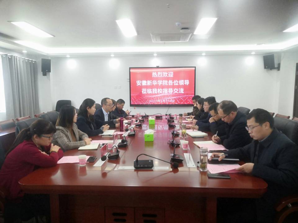 3月25日下午,安徽新华学院财金学院执行院长濮明月、商学院执行院长翟荣兵、教务处处长助理施伶俐等一行6人莅临我校指导交流。学校教务处处长俞浩,管理学院党委书记丁景良,党委副书记、院长赵伟峰,副院长张国宝、郑谦及实验室主任杨续昌参加交流座谈会。会议由赵伟峰主持。