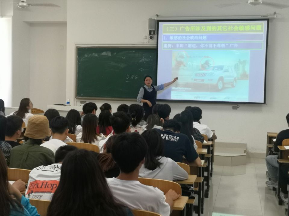 按期中教学检查安排,5月24日,管理学院在龙湖校区致知楼A204举办《广告学》课程思政示范公开课。学院党政领导、学院教学督导员和部分教师到场观摩学习。