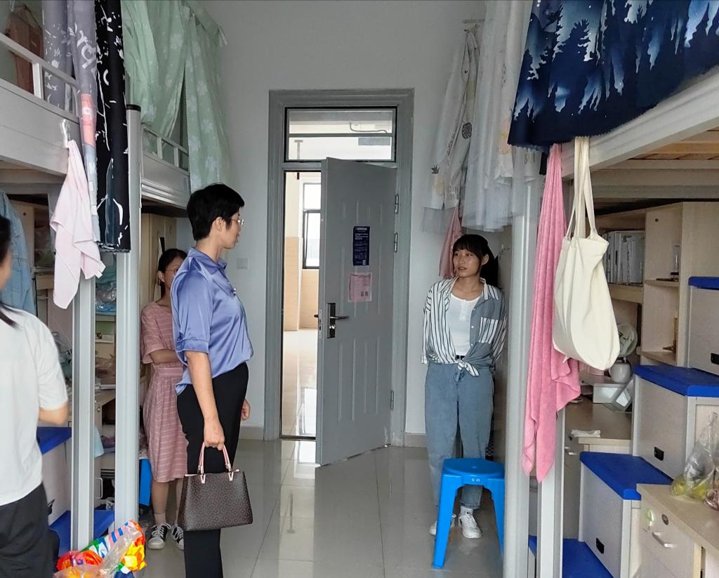 丁景良、陶漫分别深入德馨苑6号楼、7号楼,随机走访了工商管理、物流管理、质量管理工程、市场营销、市场营销(专升本)等各专业部分宿舍,了解同学们寝室生活和学业近况,每到一个宿舍,丁景良、陶漫都与学生亲切交谈,仔细检查寝室安全情况、询问同学们返校后在学习或生活上存在的困难,叮嘱学生要严格遵守学校疫情期间的管控制度,做好目标规划,以良好的精神面貌迎接新学期到来。走访过程中,学院老师还对优秀内务寝室提出表扬,对内务较差寝室给予批评,责令改正,同时要求同学们要注意财产和寝室安全,保持宿舍干净卫生,寝室成员要相互关心,相互帮助,共同营造安全、和谐的宿舍环境。
