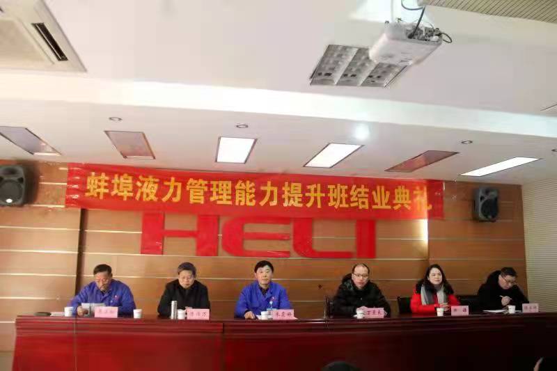 在管理学院和蚌埠液力机械公司双方共同努力下,历时两年半的蚌埠液力机械有限公司中干培训班于12月27号下午在公司大会议室迎来了结业仪式。蚌埠液力机械有限公司党委书记、总经理朱霞好,管理学院党委书记丁景良、院长陈传万、副院长郑谦、管理系主任程业炳共同出席了结业仪式。结业式由公司纪委书记吴远松主持。