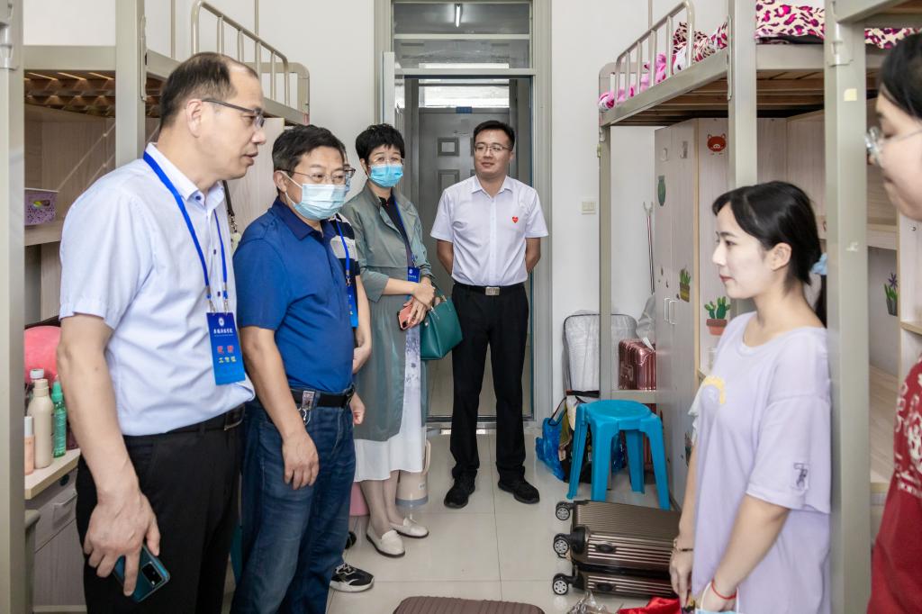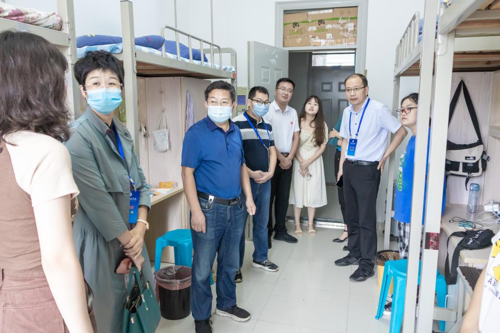 “家乡是哪里的?”“和爸爸妈妈一起来的吗?”“刚进大学感觉怎么样?”“要做好学业规划”“室友间相互熟悉了吗?”“平时要注意人身和财产安全”……丁景良、陈传万一行来到了德馨苑2号楼、3号楼,亲切走访看望广大新同学,每到一间宿舍,与同学们亲切交谈,问寒问暖,教育新生要尽早适应大学学习与生活,鼓励新生要早定学习目标,要求亲生要与家长保持经常沟通,要多与辅导员和老师加强交流,要注意疫情防控和自身安全,要锤炼品格、磨练意志、学会担当……