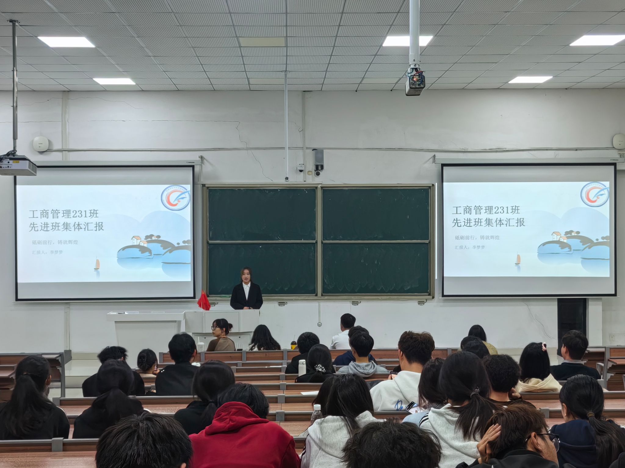 为推进班级建设,弘扬优良学风,做好朋辈引领,发挥先进典型的示范作用,11月14日晚,管理学院在致知楼B111举办了先进班集体展示汇报会。化学与材料工程学院专职辅导员路润麟、电气与电子工程学院专职辅导员牛需要、校保卫处王婉兴老师担任评委。参评班级代表和2024级新生班委代表参加会议,会议由管理学院专职辅导员赵晨妍主持。