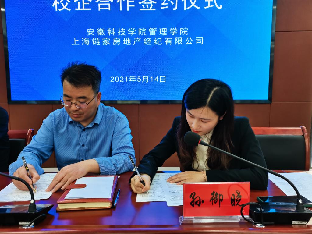 赵伟峰与孙御晓共同签署了《安博站·官方版网站登录入口与上海链家房地产经纪有限公司校企合作协议书》。