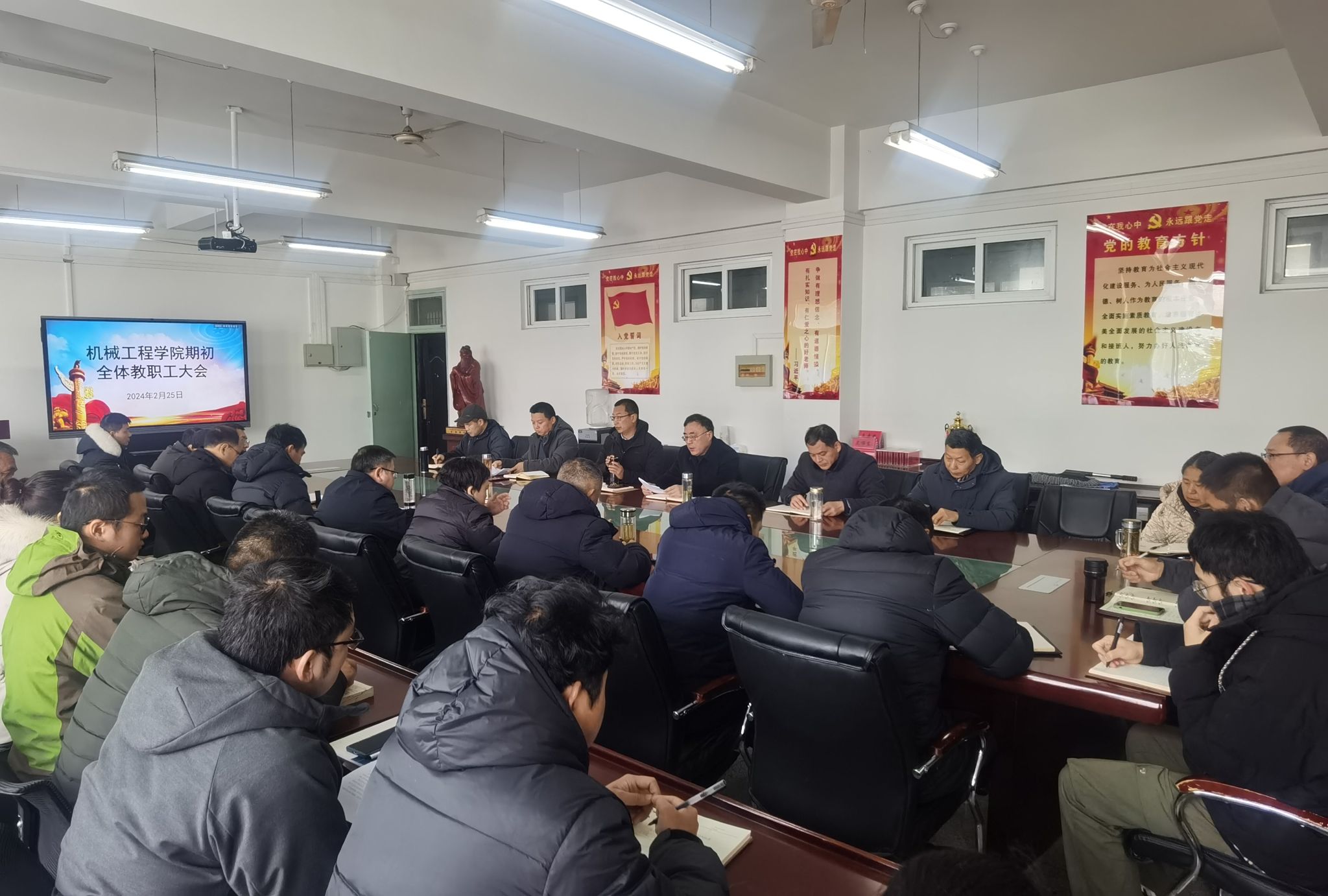 为了扎实推进学院2024年度工作落实,2月25日上午,机械工程学院在笃行楼409会议室召开全体教职工大会,安排布置新学期工作,会议由学院党委书记姚勇主持。