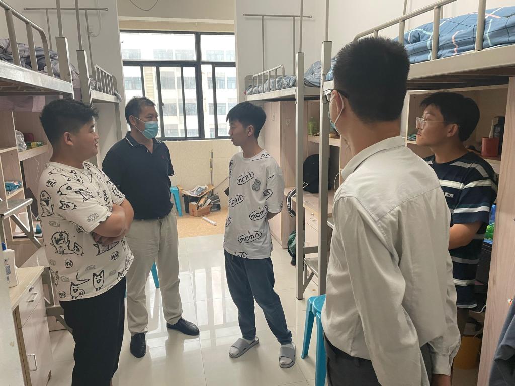 走访过程中,学院由党委书记黄树桥、院长李子荣、副院长唐婧分别带队前往男女生寝室查看了新生的住宿条件与生活安排,与新生们亲切地交流,询问他们的家庭和个人情况,叮嘱他们在外求学一定要学会照顾自己身体,注意增减衣物,预防感冒,同时要注意宿舍用电安全,做好宿舍疫情防控工作。他们还鼓励新生们尽快适应大学新环境,勉励大家珍惜大学时光,做好人生规划,认真学好专业知识,利用好学校的各个平台努力提高素质、增长才干,合理安排好自己的大学生活。