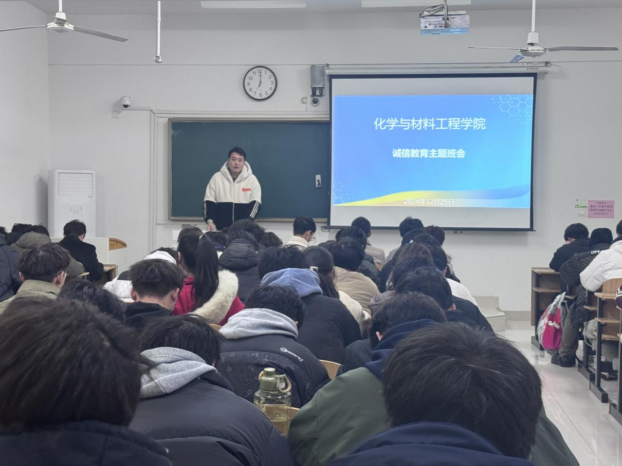 临近期末,为了营造良好的考试氛围,树立诚信考试的风气,化学与材料工程学院各班级积极开展期末诚信考试主题班会。