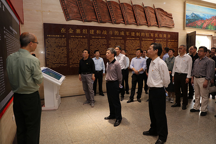 9日上午,全体成员来到金寨县红军广场,瞻仰革命烈士纪念塔,向革命烈士敬献花篮并深深三鞠躬。在纪念塔下,蒋德勤带领全体成员面对党旗重温入党誓词,深切缅怀革命先辈英勇无畏的革命精神,感悟革命老区大地上奔涌的红色血脉。全体成员还参观了红军纪念堂、洪学智将军墓园、红军墓园和金寨县革命博物馆,透过珍贵的文物史料、感人的革命故事,真切感受金寨“一寸山河一寸血,一抔热土一抔魂”的光辉历史,感悟共产党员的初心使命、为国为民的赤子情怀,从中汲取不断奋进的力量。