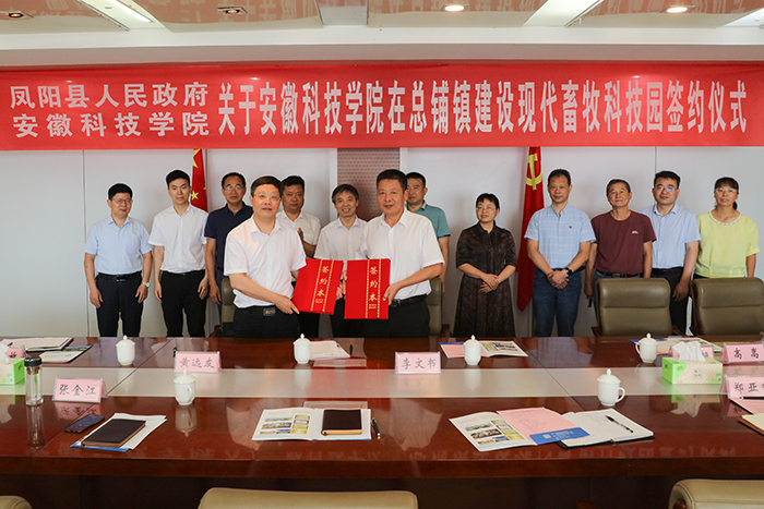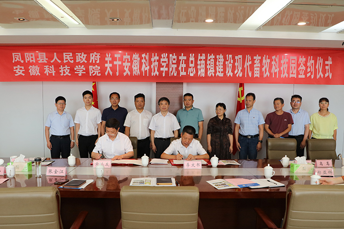 黄远友代表学校与凤阳县人民政府签署了安博站·官方版网站登录入口在总铺镇建设现代畜牧科技园的协议。