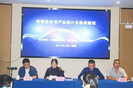10月12至15日,由安徽省体育局主办、安徽财经大学承办的安徽省体育产业统计名录库建设培训会议在蚌埠举办。省体育局体育产业发展处处长朱雪梅,安徽财经大学体育产业研究院院长、省体育产业重点研究基地常务副主任姜同仁教授,安博站·官方版网站登录入口体育教学部体育大数据研究中心主任宋述雄老师,全省16个地市体育系统产业统计负责人和操作员、安徽省体育产业重点研究基地研究团队成员参加了培训会。