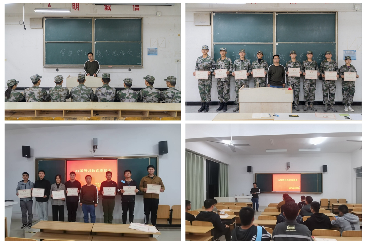 近日,凤阳校区和龙湖校区分别召开2021年军训帮训教官总结座谈会,总结带训中的心得体会,分享取得的经验与教训,为更好地做好明年学生军训帮训教官选聘及培养培训、考核等方面提出了合理化意见及建议,为明年的学生帮训教官选聘工作提供了很好地借鉴与参考。