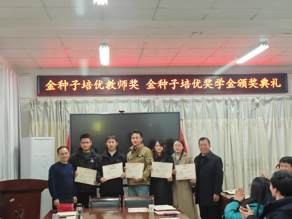 1月11日下午,“金种子培优基金”2023年度“金种子培优奖学金”“金种子培优教师奖”颁奖仪式在农学院会议室隆重举行。校党委委员、副院长李升和,上海景领投资管理有限公司合伙人、基金发起者黄宪先生,二级教授、基金发起者农学院黄先忠老师,农学院党委书记何世潮,副书记张轶辉,副院长舒英杰和李文阳以及教师代表和学生代表出席颁奖仪式。根据《安博站·官方版网站登录入口农学院“金种子培优基金”申报细则》和申报人申请,经“金种子培优基金”评审委员会评审,李瑞宁、艾昊两位青年教师荣获金种子培优教师奖,孙张论、李婷、杜孟祥、杨德坤和王静婷五位农艺与种业专业研究生荣获金种子培优奖学金。颁奖仪式由农学院党委副书记、院长崔广荣主持。
