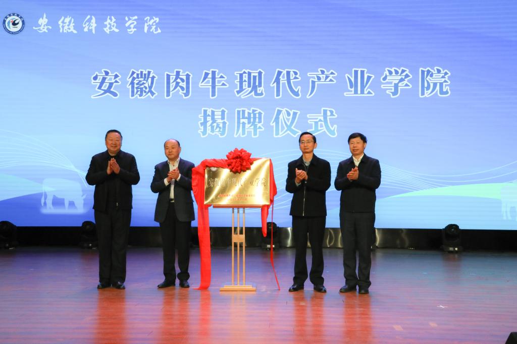 2023年12月10日,我校牵头组建的安徽肉牛现代产业学院成立揭牌暨肉牛产业发展研讨会在凤阳校区举行,这是目前全国高校首家校企共建的肉牛现代产业学院。建设安徽肉牛现代产业学院是我校贯彻落实省委省政府关于实施“秸秆变肉”暨肉牛振兴计划的决策部署的具体举措。学校将以此为契机,进一步加强与业内知名企业的深度合作,发挥学校所长,创新工作机制,努力打造具有示范引领作用的肉牛产业科教融合发展新模式,为推动我省肉牛产业高质量发展、加快建设高质高效的农业强省作出积极贡献。