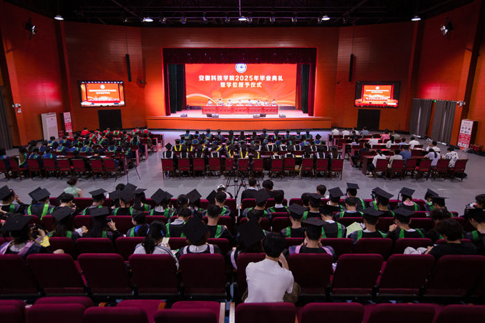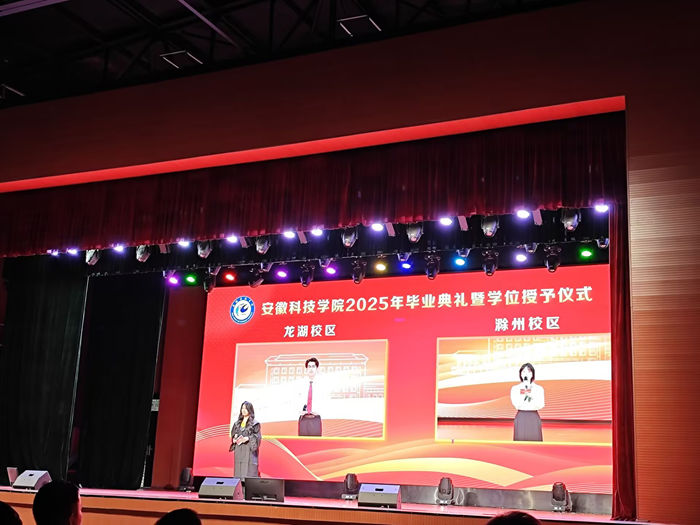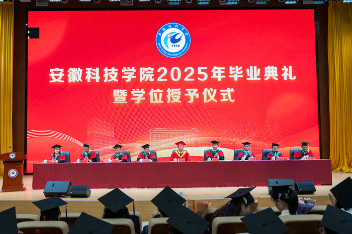6月20日,我校2025年毕业典礼暨学位授予仪式在凤阳校区大学生活动中心、龙湖校区图书馆东辅楼报告厅、滁州校区知行礼堂同步举行。党委书记时伟,党委副书记、院长李升和,党委副书记曹付忠,党委委员、副院长王孝义,党委委员、副院长赵伟峰,党委委员、副院长王玉和,党委委员、纪委书记、监察专员彭庆刚,党委委员、组织部部长钱锐,党委委员、宣传部部长、统战部部长何永勇,校学位委员会委员出席典礼并为毕业生颁发学位证书、扶正流苏并合影留念。典礼由曹付忠主持。