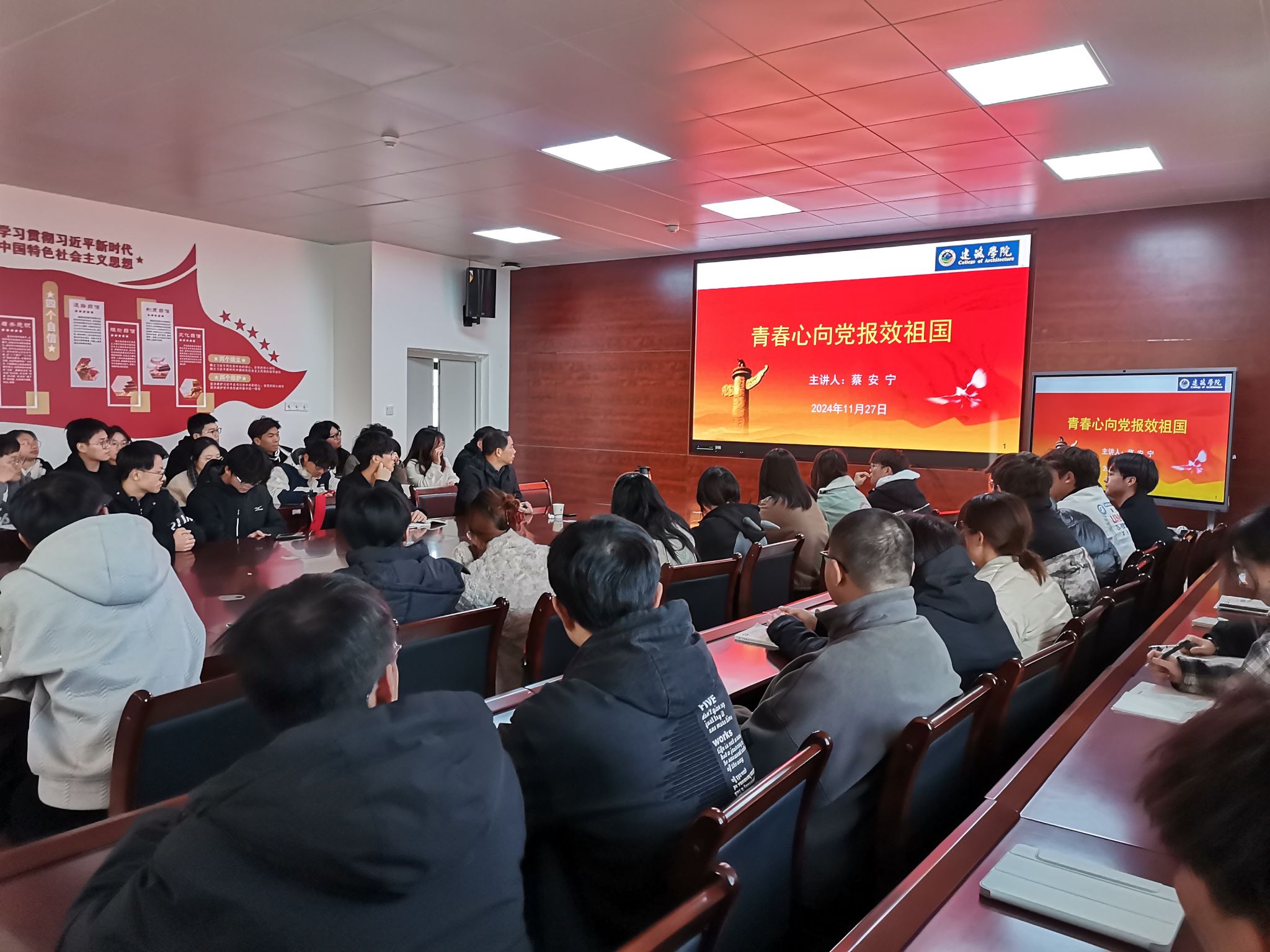 为增强学院分党校第61期入党积极分子培训班的针对性和感染力,11月27日下午,建筑学院特邀国土空间规划与治理领域专家、南京晓庄学院蔡安宁教授为学员们上主题为“青春心向党 报效祖国”特色党课。本次党课由学院副院长张伟主持,学院61期入党积极分子和新发展党员参加。