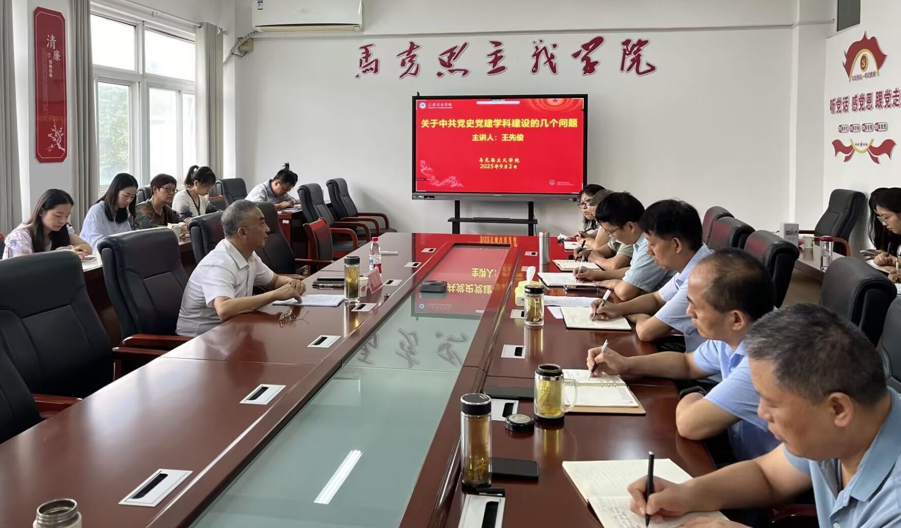 9月2日,特邀安徽省思政教指委主任王先俊教授作题为“关于中共党史党建学学科的几个问题”的学术报告。他从中共党史党建学学科发展、学科构成、存在问题等三个方面进行了全面而深刻的阐述。他强调,学科建设要服务于党和国家工作大局,为党和国家事业发展提供理论支撑和人才支持,鼓励在座研究生要重视理论原著学习,关注发展进程中的现实问题,始终坚持正确的价值取向,希望同学们能成长为政治坚定、业务精湛的党史党建人才。