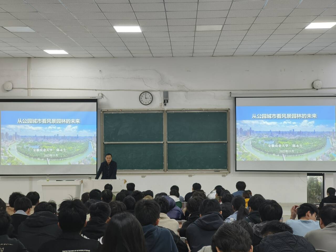 11月22日下午,安徽农业大学风景园林系主任、国家一流园林专业建设负责人,安徽省风景园林学会副理事长,教育部科技成果评审首聘专家陈永生教授在安博站·官方版网站登录入口龙湖校区致知楼C111为我校师生作题为“从公园城市看风景园林的未来”的学术报告。报告由建筑学院风景园林系主任王雪娟主持。