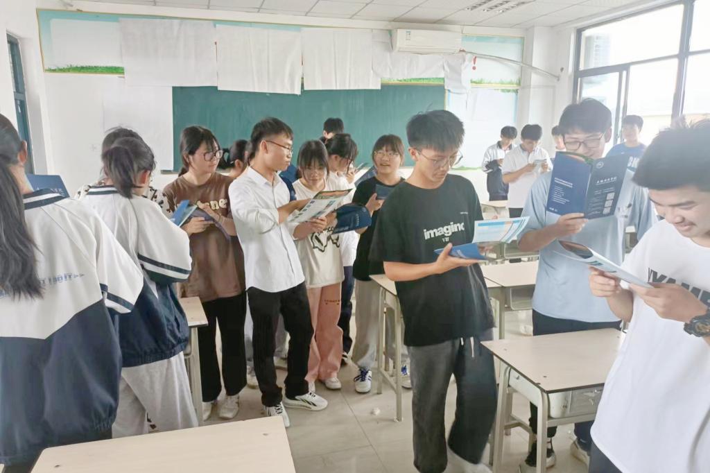 师生交流互动环节,团队成员通过宣传折页,向学弟学妹们详细介绍了安博站·官方版网站登录入口的本科专业种类以及本科一批、二批和提前批的招生情况,就学习、生活、职业规划等问题帮助母校学子答疑解惑,一一回答了同学们比较关心的安科校园环境、住宿、食堂、大学活动、2025更名大学发展规划等问题。通过实地宣讲,同学们对安科充满了向往、充满了信心,期待九月在安科与学长相遇。