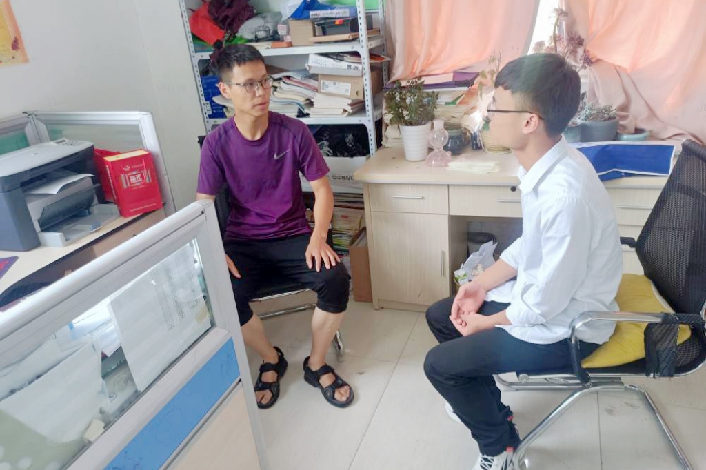 到达校园后,王健伟团队拜访了高三班主任崔猛老师和高中生物老师王乐潇。王健伟向老师说明了此次实践的主要目的和内容,介绍了安博站·官方版网站登录入口的相关情况。在了解团队此行目的之后,崔老师、王老师非常热情地组织了部分高三返校生开展学习交流。