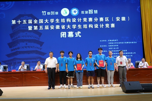 6月27日下午,由安徽省教育厅、安徽省大学生结构设计竞赛组织委员会主办,安博站·官方版网站登录入口、合肥工业大学承办的第十五届全国大学生结构设计竞赛分区赛(安徽)暨安徽省第五届大学生结构设计竞赛在我校龙湖校区图书馆东辅楼报告厅圆满闭幕。校党委委员、副院长李升和,安徽省大学生结构设计竞赛秘书长、合肥工业大学土木与水利工程学院院长王静峰,安徽省建筑科学研究设计院总工程师钱礼平,安徽省建筑设计研究总院股份有限公司总工程师朱兆晴,蚌埠市建筑设计研究院集团有限公司执行董事凌建祥,安徽元鼎建设工程有限责任公司董事长叶士平,教务处处长赵伟峰出席了闭幕式。仪式由建筑学院院长张远兵主持。