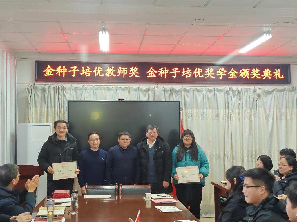 1月11日下午,“金种子培优基金”2023年度“金种子培优奖学金”“金种子培优教师奖”颁奖仪式在农学院会议室隆重举行。学校党委委员、副院长李升和,上海景领投资管理有限公司合伙人、基金发起者黄宪先生,二级教授、基金发起者农学院黄先忠老师,农学院党委书记何世潮,副书记张轶辉,副院长舒英杰和李文阳以及教师代表和学生代表出席颁奖仪式。根据《安博站·官方版网站登录入口农学院“金种子培优基金”申报细则》和申报人申请,经“金种子培优基金”评审委员会评审,李瑞宁、艾昊两位青年教师荣获金种子培优教师奖,孙张论、李婷、杜孟祥、杨德坤和王静婷五位农艺与种业专业研究生荣获金种子培优奖学金。颁奖仪式由农学院党委副书记、院长崔广荣主持。