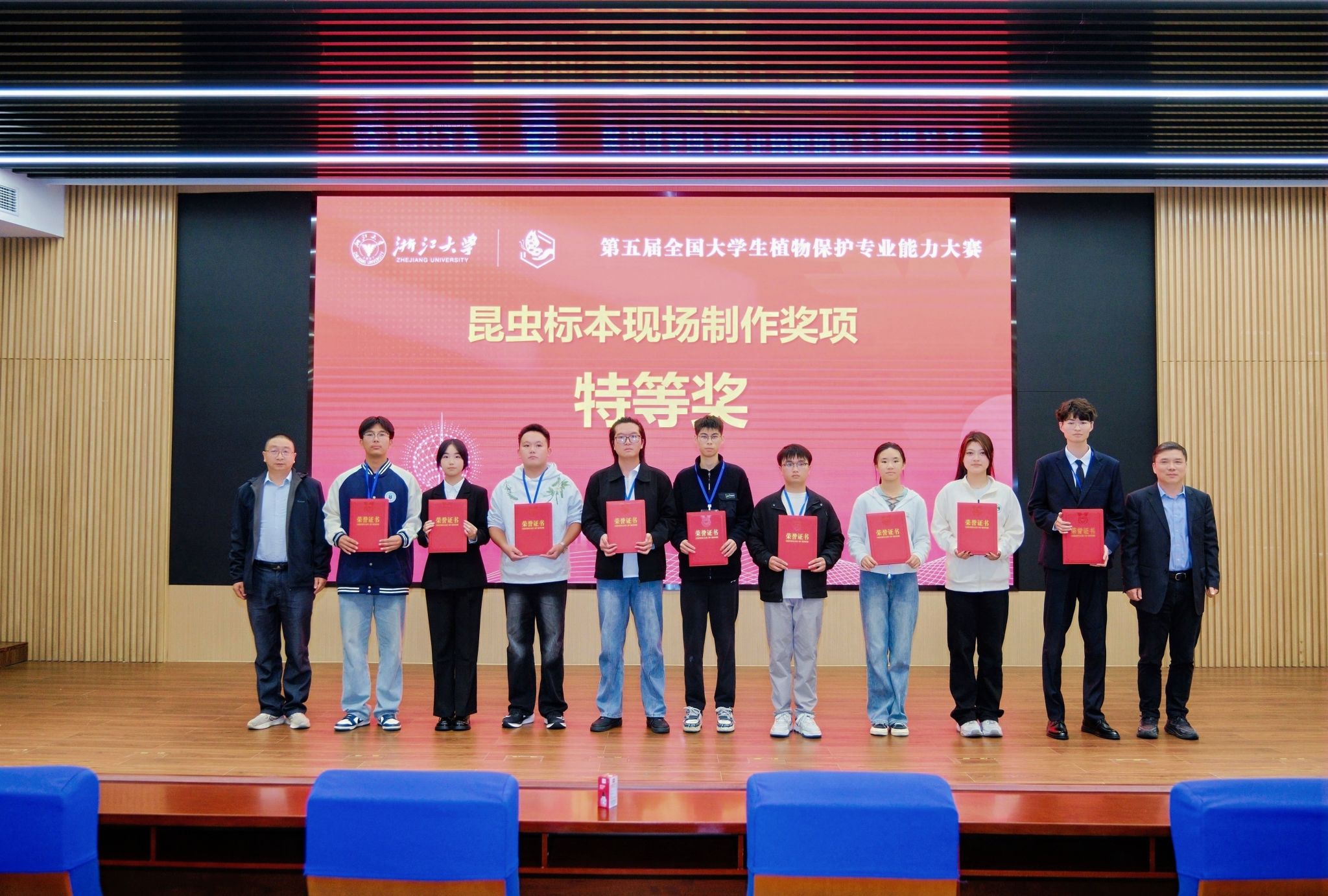 2025年11月7日至9日,第五届全国大学生植物保护专业能力大赛在浙江大学举办。农学院党委副书记张轶辉,农学院植物保护系教师杜军利、黄伟东、刘子琪和8名农学院学生参赛。经过激烈角逐,我校喜获单项特等奖1项、二等奖4项、三等奖5项。