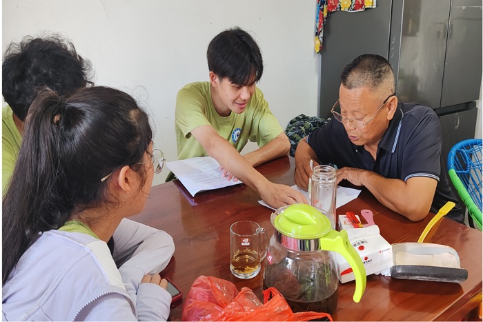 为了更好地服务乡村振兴,8月7日—8日,团队成员赴刘畈乡刘畈村、马甸村与九田村开展入户调研活动,在感受大别山区别样风土人情的同时,进一步了解村民的生活状况和现实需求。团队成员通过问卷调查、访谈等形式,走进寻常百姓家,展开亲切慰问交流,收集了大量村民对乡村发展、红色文化传承、教育医疗、基础设施改善等方面的第一手资料,为团队制定切实可行的乡村振兴方案提供了重要依据,也让团队成员更加深刻地认识到乡村振兴工作的复杂性和艰巨性。