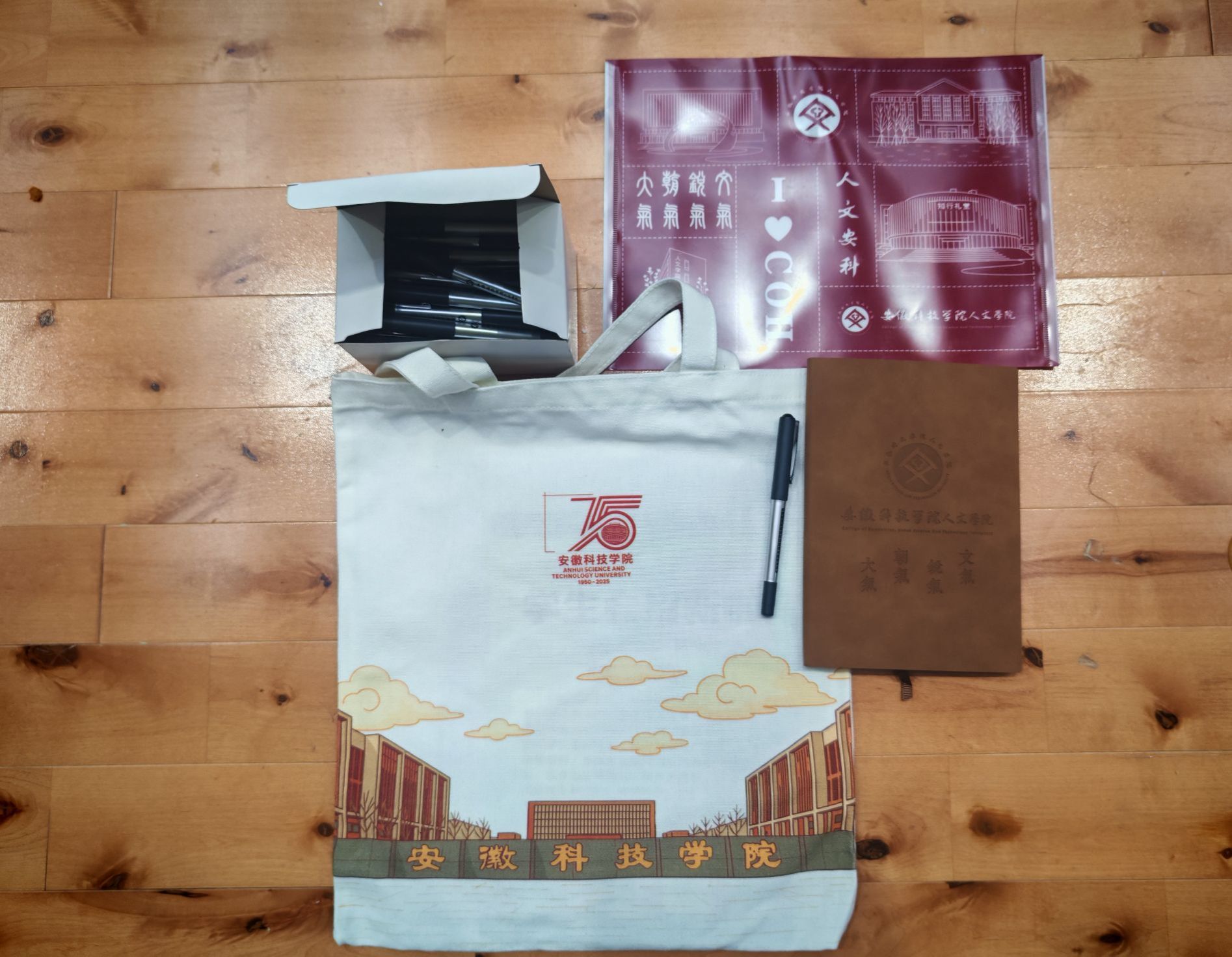 人文学院2025年迎新文创礼物,既见历史厚重,亦显青春锋芒。时绘帆布包以学校建筑为景,融入校庆标识,兼具实用性与纪念意义;人文笔记本棕色皮质封面质感十足,是承载大学思绪的“人文记忆本”;文创笔具简约的黑笔设计,于细微处彰显学院对2025级新生学习生活的贴心关注;主题文件夹以红色为底,印有学校标志性建筑“人文系科”标识等元素,充满人文归属感。这些文创礼物是学院送给新生的“人文初礼”,每一件都蕴含着对新生的期许与关怀。