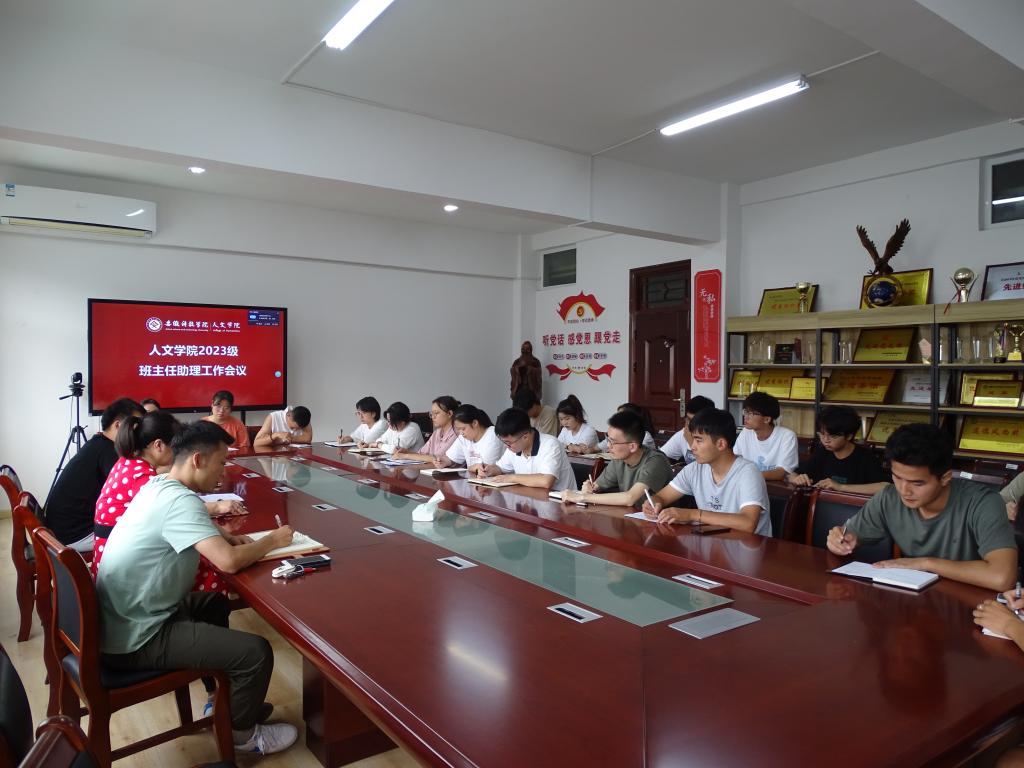 日征月迈,人文日新。为夯实2023年迎新工作基础,提升我院新生辅导员助理工作队伍的协助管理能力和服务水平,适应角色、明确工作,切实增强全员育人合力,9月3日下午,人文学院于学知楼324召开新生辅导员助理培训动员会议。人文学院党委副书记、纪委书记李沙娜出席并主持会议,新生辅导员焦雪松、徐琦琦和全部新生辅导员助理参加。