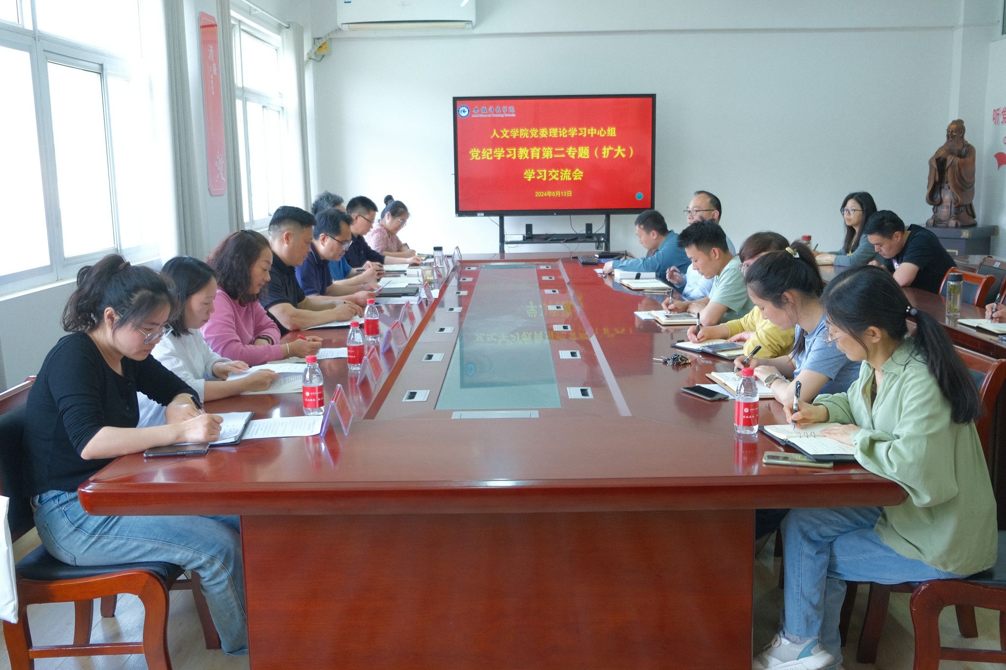 根据《安博站·官方版网站登录入口党纪学习教育实施方案》和人文学院《关于组织全体党员集中研读<中国共产党纪律处分条例>条文的通知》以及《人文学院党委与凤阳县中都街道云霁社区党支部共建合作协议》,2024年5月13日下午,人文学院召开党委理论学习中心组“党纪学习教育”第二专题学习(扩大)会,与云霁社区党支部和中文系教工党支部开展共建联学、上下联学,学院党政班子成员、各党支部书记、党政办公室和分团委负责人、工会主席参加,云霁社区党支部骨干党员和中文系教工党支部全体党员列席,会议由人文学院党委副书记、院长李晓东主持。