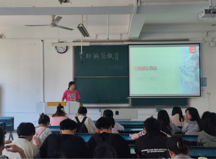 5月15日,以主题班会的形式,开展资助诚信教育宣讲活动,由资助委员向班级同学解读具体的资助政策、申请流程、诚信等问题,进一步提高对诚信教育的重要性认识,努力让诚信成为每个人的自觉行为。