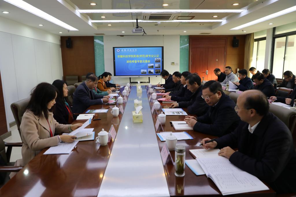 按照教育部普通高等学校师范类专业认证工作部署,11月26至29日,由浙江工商大学施建祥教授任组长,陕西师范大学吕敏宏教授、廊坊师范学院张秀梅教授、江苏省教育评估院邱白丽副研究员、湖州市南浔高级中学正高级教师罗慧英,专家组秘书安庆师范大学陈磊为成员的教育部普通高等学校师范类专业认证专家组一行6人,对安博站·官方版网站登录入口英语专业第二级认证进行现场考查。