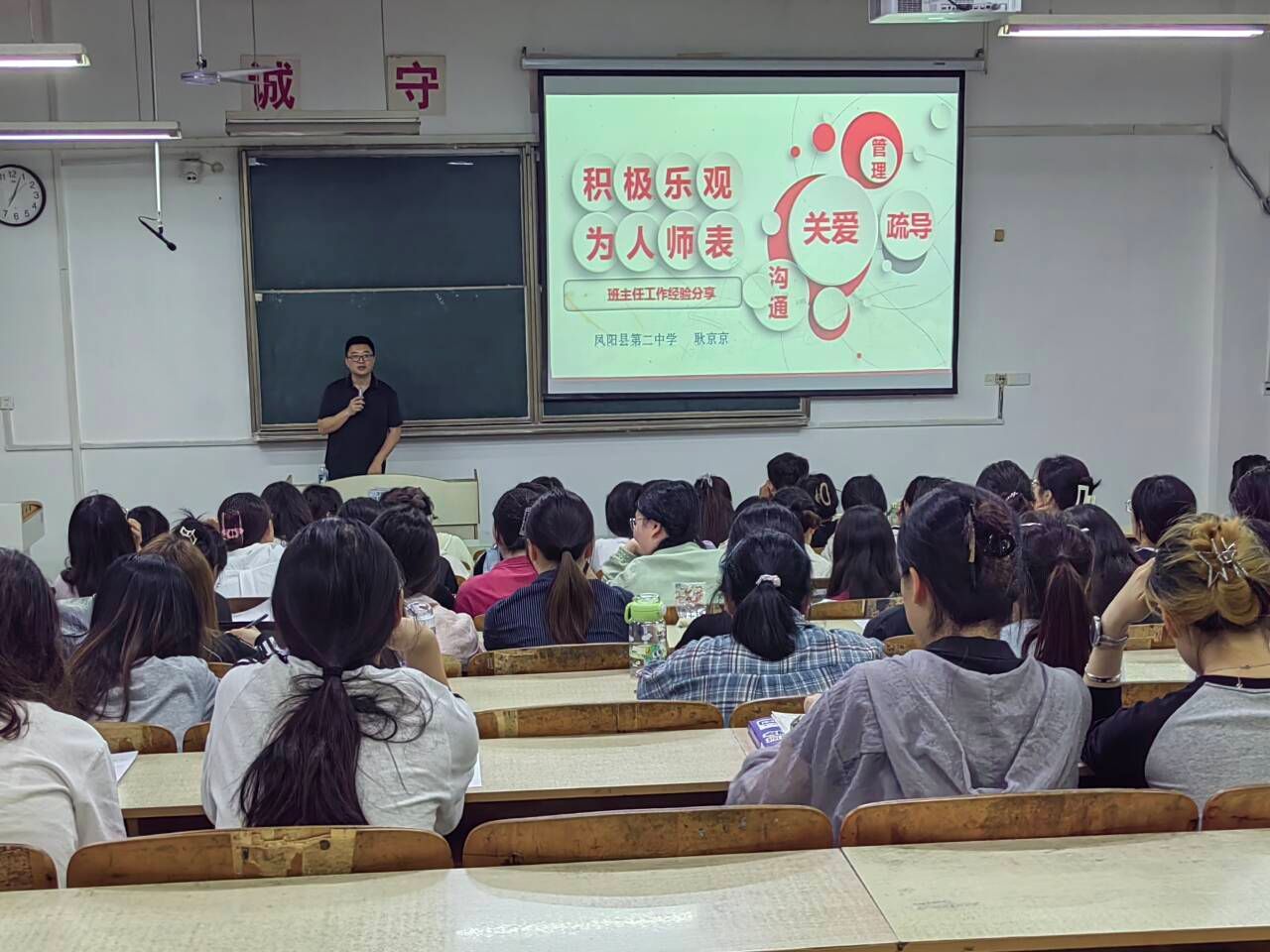 5月7日晚,外国语学院邀请2007届优秀校友、凤阳县第二中学副校长耿京京来校,为2022级英语(师范)专业全体学生作题为“积极乐观,为人师表”的班级管理专题讲座。讲座由外国语学院副院长洪民主持。