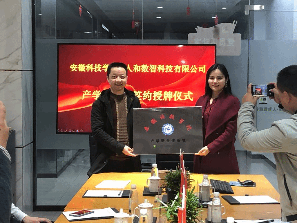 余宏杰代表学校与人和数智科技有限公司签订了校企合作框架协议书,并进行了安博站·官方版网站登录入口产学研合作基地授牌仪式。