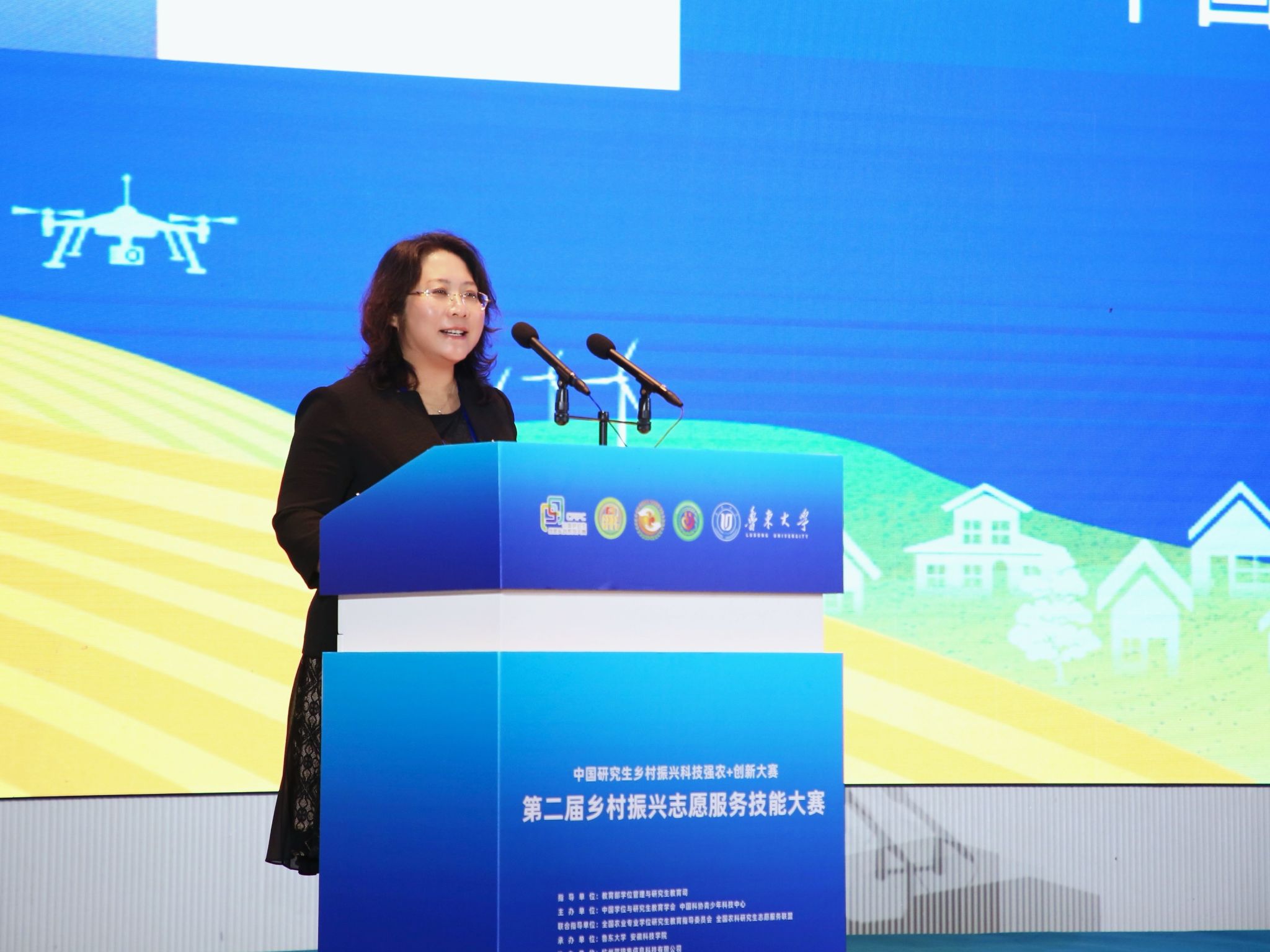 赵瑜在开幕式上致辞,她强调,今年是习近平总书记对研究生教育工作作出重要指示五周年,也是《教育强国建设规划纲要(2024-2035 年)》贯彻落实开局之年,纲要明确提出“完善拔尖创新人才发现和培养机制”。研究生教育作为高水平拔尖创新人才培养的主渠道,在支撑高水平科技自立自强、高水平人才自主培养,建设世界重要人才中心和创新高地中发挥关键作用。他指出,志愿服务是中国式现代化建设与乡村振兴的重要力量,去年印发的《关于健全新时代志愿服务体系的意见》充分体现了党中央对志愿服务事业的高度重视。乡村振兴志愿服务技能大赛作为科技强农+创新大赛的重要组成,引导研究生关注“三农”、涵养家国情怀,用专业所长助力 “新农村、新农业、新农民、新生态” 建设。本届大赛规模实现翻番,同比增长超 160%,充分彰显了研究生将农业农村需求与科研理论结合、投身乡村振兴的热情与成果。