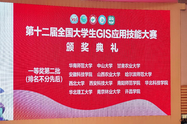 2023年12月2日至3日,由中国地理信息产业协会、中国地理学会主办的第十二届全国大学生GIS应用技能大赛在广州大学举办。我校资源与环境学院地理信息科学专业张振国、袁平两位指导老师,带领刘家乐、李卓、马野、陈冠樵4名学生参加比赛。在经过空间数据采集编辑与集成处理、空间分析技术应用两个阶段环节的激烈角逐后,我校学子成功斩获一等奖。