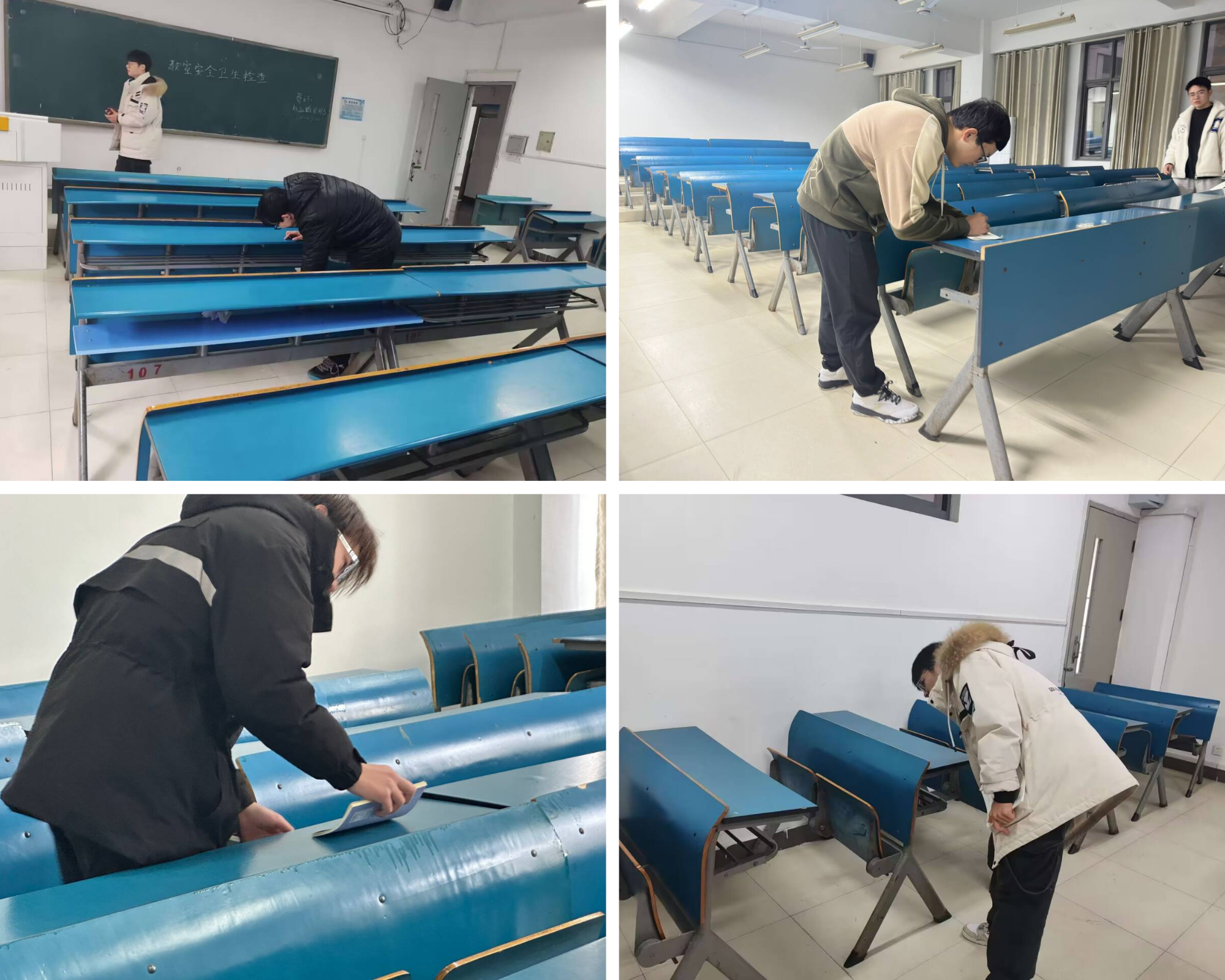 本次活动旨在全面了解学期初教学工作运行状况,切实保障教学工作有序开展。学生会的工作人员深入新知楼A栋教学楼,积极开展对教室设施的检查,以便发现需要进行维修、清洁和更新的教室设备,确保学生们能够在一个安全、舒适和有良好学习环境的学校进行学习。在此期间工作人员仔细检查每个教室的桌椅、黑板和投影仪等设施,确保它们能够正常使用。并且,工作人员还检查每个教室的空调和供暖设备,以确保学生们在各种天气条件下都能够保持舒适和温暖。