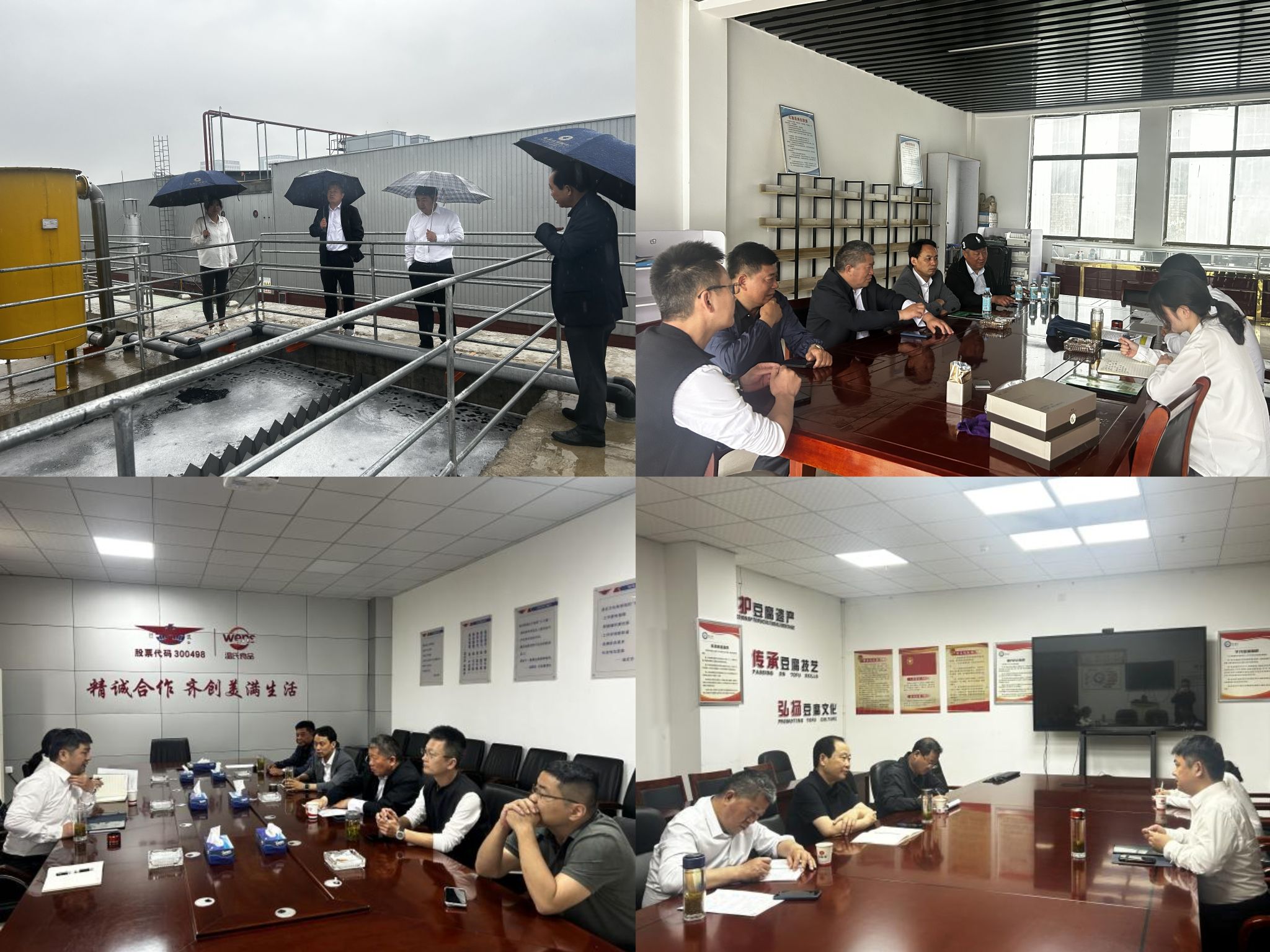 团队一行首先调研了温氏畜牧有限公司的标准化养殖场,详细了解了企业在粪污处理、沼液还田、有机肥生产等方面的运作情况、成效以及遇到的难题。随后,走访了安徽天缘民心农业科技有限公司,该企业通过对畜禽粪污等农业有机废弃物的高效转化,建成了一条集收集、发酵、制肥于一体的有机肥生产链条,在服务当地农业循环经济方面成效显著。在安徽八公山豆制品有限公司,调研组重点考察了企业在处理豆渣、豆水等副产物方面的做法,汪建飞教授对企业在副产物资源化利用方面的积极探索表示充分肯定,他指出,豆制品废弃物富含蛋白质,具备广泛的再利用价值,应进一步提升其收集和处理效率,推动与畜禽养殖、农作物种植等环节的有效联动。