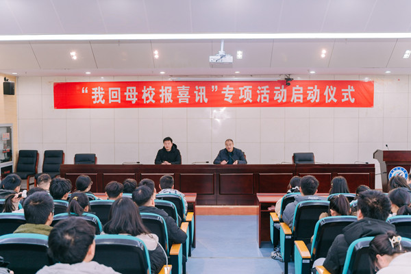 为强化学校形象传递和内涵推介,及早谋划2022年招生工作,增进与省内优质生源中学常态互动,加强人才培养信息双向互通,适时实地介绍我校建设发展改革成就。招生与就业工作处、学生处、团委、研究生处合作开展了“我回母校报喜讯”社会实践专项活动。1月1日,启动仪式分别在凤阳校区和龙湖校区举行。