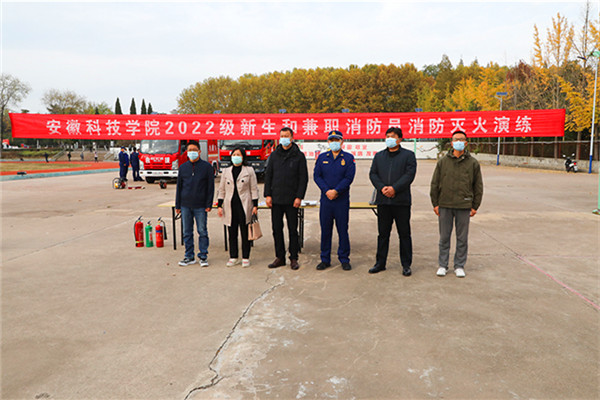 11月2日、16日,学校分别在龙湖校区、凤阳校区举行2022级新生代表和兼职消防员消防灭火演练。龙湖、凤阳两地消防救援大队、学生处负责人、各学院分管学生工作的副书记、新生辅导员、各单位兼职消防员、2022级新生各班学生代表、保卫处工作人员、两校区安保人员、校医院及校卫队队员参加了本次演练。凤阳县电视台对凤阳校区消防灭火演练进行了全程录播。演练由保卫处消防科科长刘宇航主持。