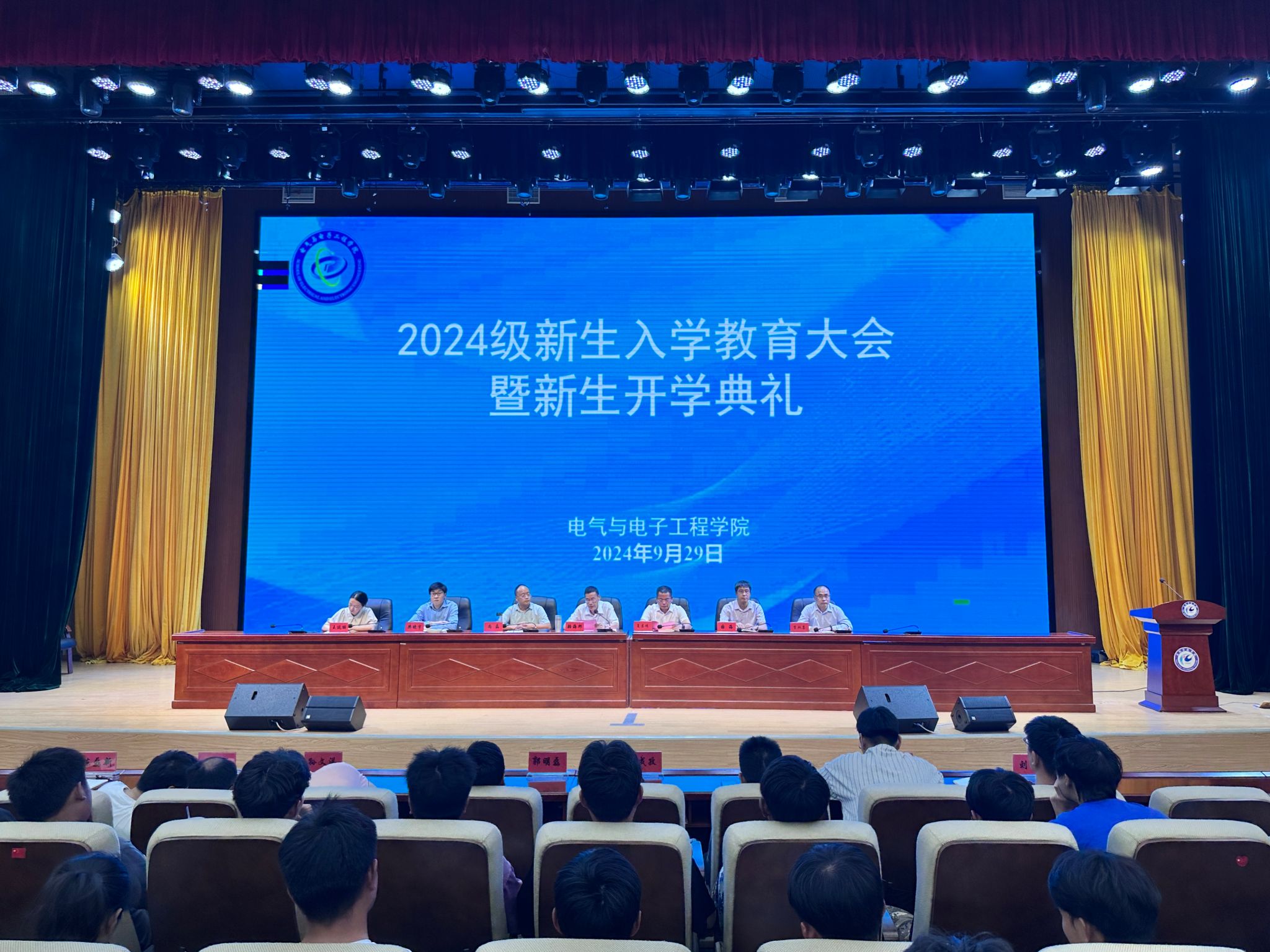 9月29日下午,电气与电子工程学院于东辅楼二楼报告厅隆重举行2024级新生开学典礼暨新生入学教育动员大会。学院党政领导班子出席本次会议,各系主要负责人、全体辅导员及2024级新生参加此次会议。会议由党委书记骆海邦主持。